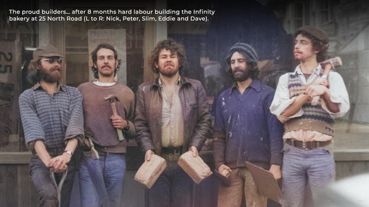 Infinity Foods ran for many years as a loose informal co-operative, with everyone paid the same wage and decisions made by whoever was most committed at the time. However in 1979 we decided to formalise the co-operative and establish it as a legal entity under Industrial Common Ownership rules, and the three partners gave away the business to the co-op.