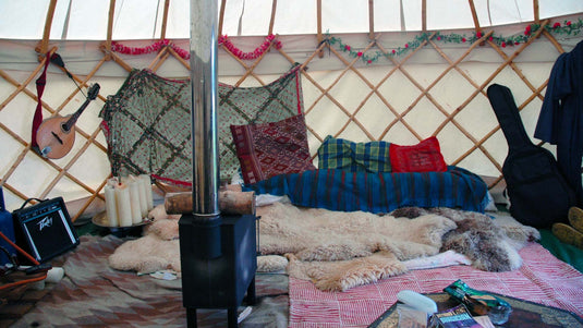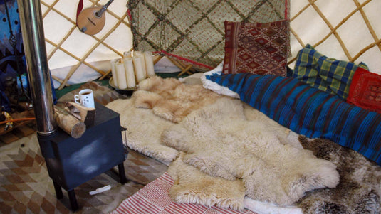 It must be around 15 years ago that I first went to qigong camp in a damp and windswept field in Devon – on the edge of Dartmoor. I set up my tiny nylon tent and as I lay in it – cold and a bit miserable – I saw a woman draw up in her estate car, laden with poles and canvas. I barely paid attention but when I roused myself an hour or so later I saw this magnificent construction and peeked in the doorway to see her reclining on a pile of sheepskins in front of a roaring wood stove. I decided on the spot that if I ever came back I’d be in one of those.
